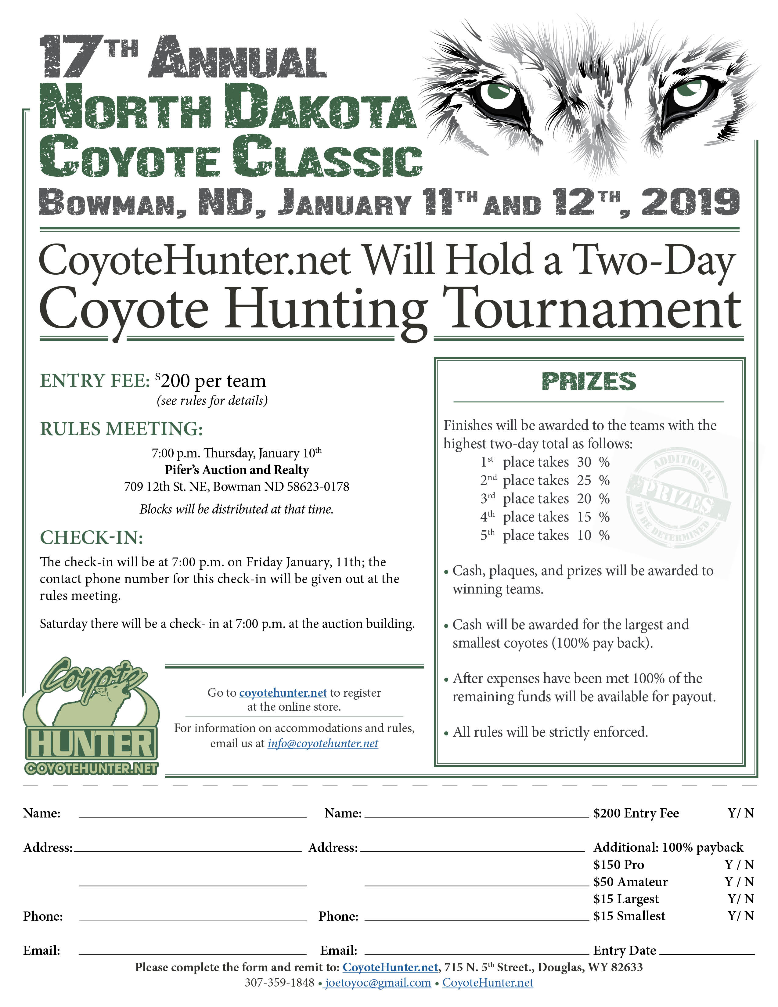 17th Annual North Dakota Coyote Classic January 11&12, 2019.