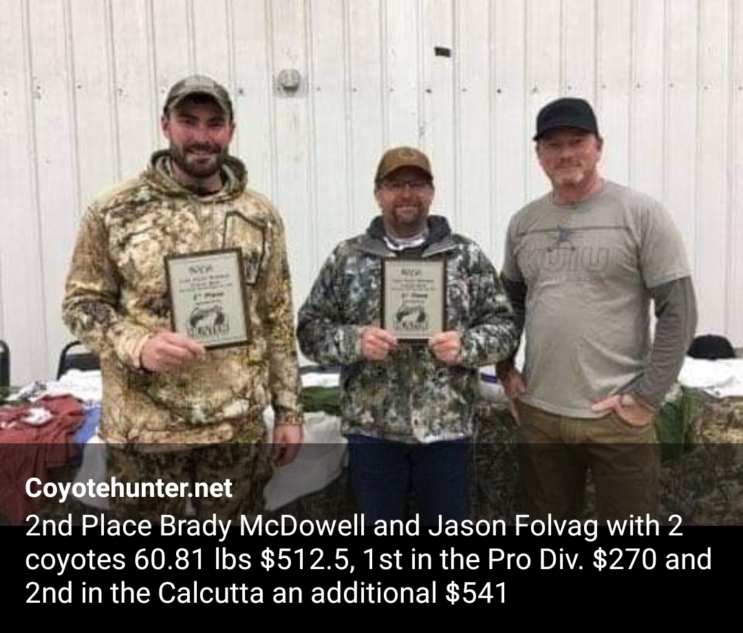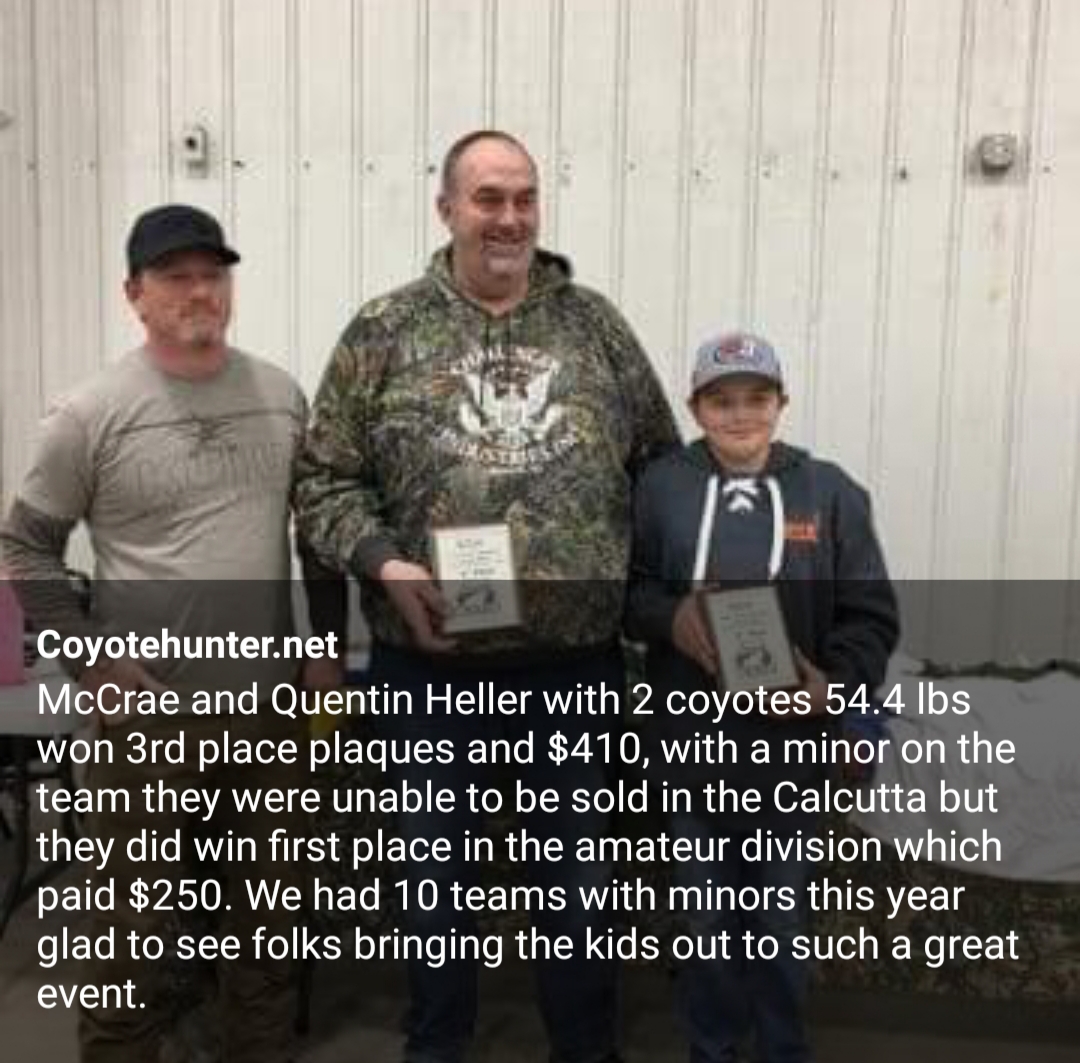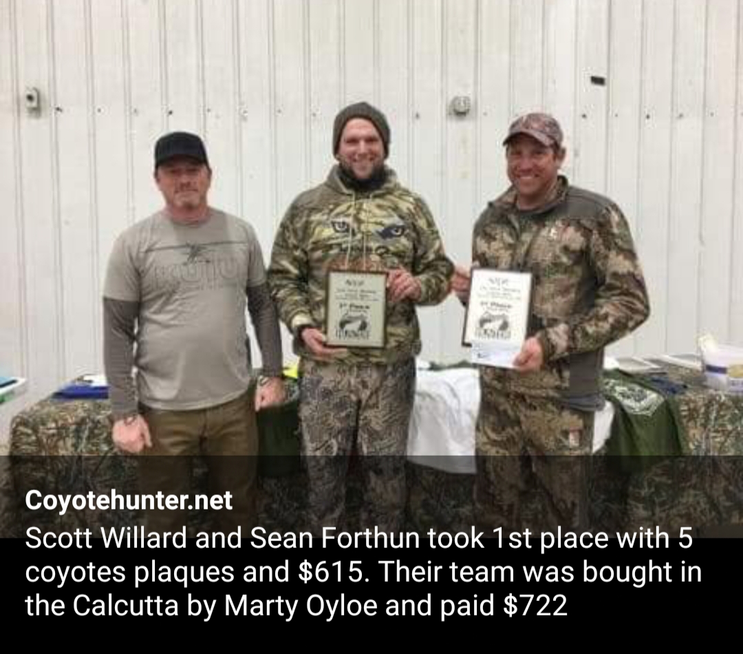 To raise money for the scholarship, we will hold a Calcutta on Friday night and auction the teams off to the highest bider. You do not have to register for the hunt to participate in the Calcutta. Cash will be awarded for the largest and smallest coyotes.