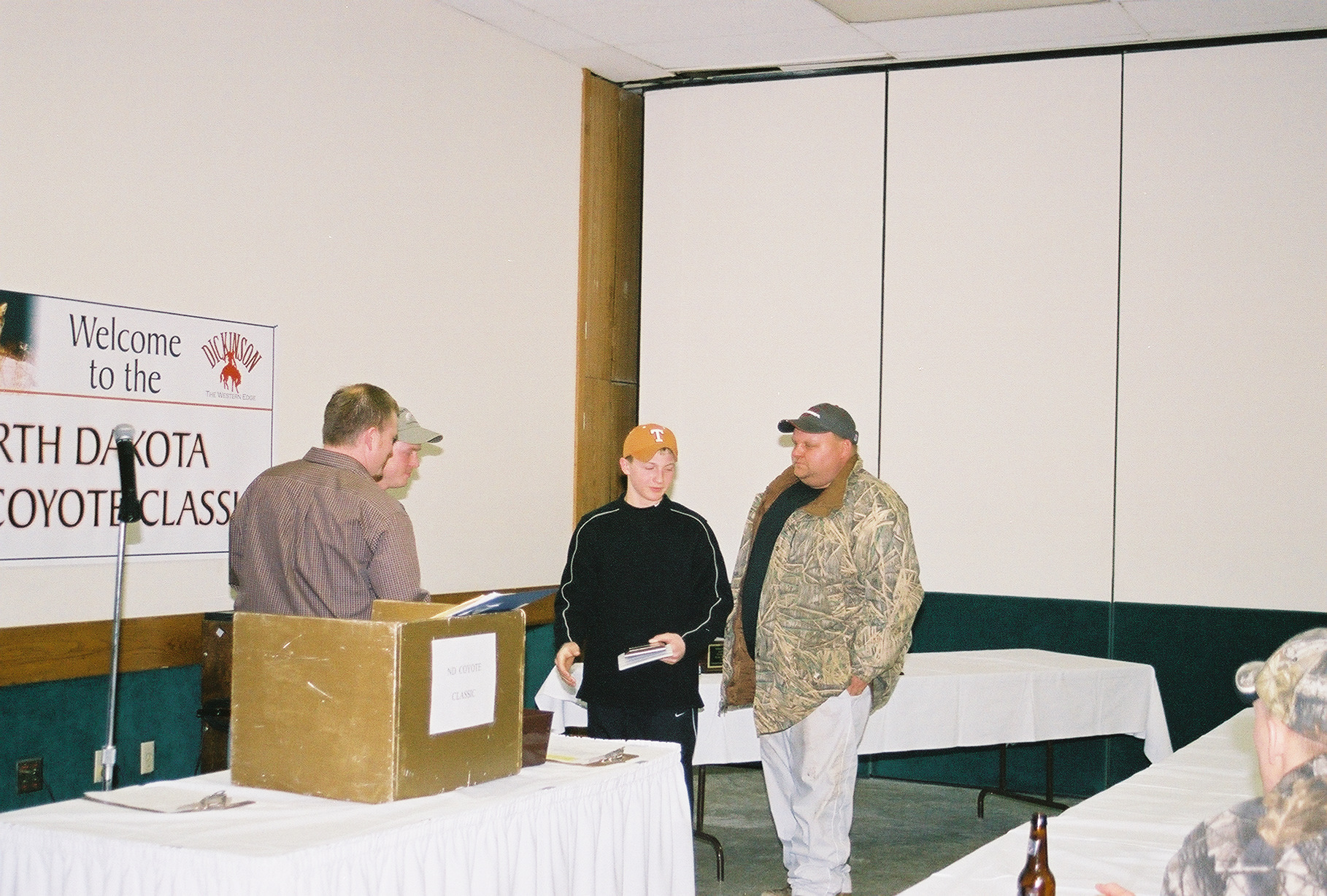 Despite bitter -50 degrees wind chill conditions, the 3rd Annual North Dakota Coyote Classic, sponsored by Coyotehunter.net was a great success. Hosted at the Days Inn and Grand Dakota Lodge in Dickinson, North Dakota January 13-15, 2005, this tournament offered over $6000 in cash and prizes with an additional $995 generated by our first Calcutta team auction and $500 added money from Coyoteclub.org. Unlike most coyote tournaments hosted throughout the state, this year's Coyote Classic offered hunters an opportunity to learn about hunting and calling coyotes from Walt Earl of http://www.coyoteclub.org, from Judith Gap, Montana, and Primos pro-team member Kirby Nauta from Spearfish, South Dakota. Go to http://www.coyotehunter.net for tournament pictures and team results.