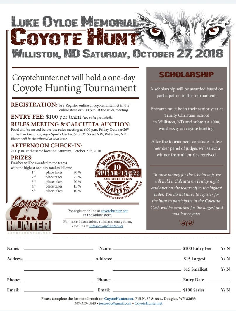 Re: Luke Oyloe Memorial Coyote Hunt October 27, 2018